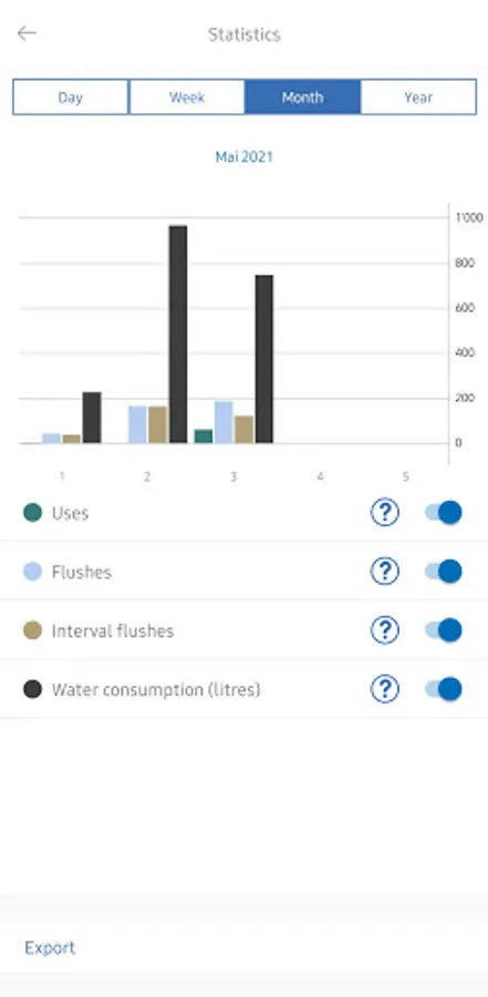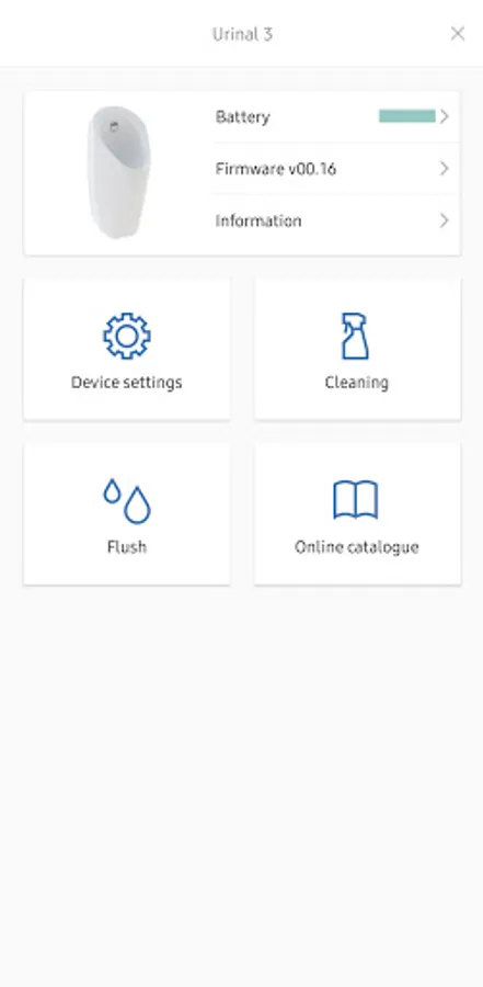 During operation, the user can access and export statistics such as usage, flushes and events. Cleaning mode deactivates the system in just a few steps when cleaning is about to be carried out. If maintenance work is required, the app provides support in carrying it out.