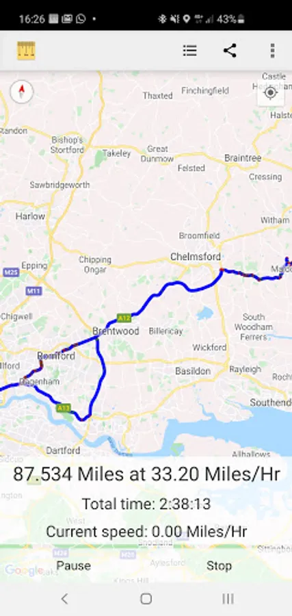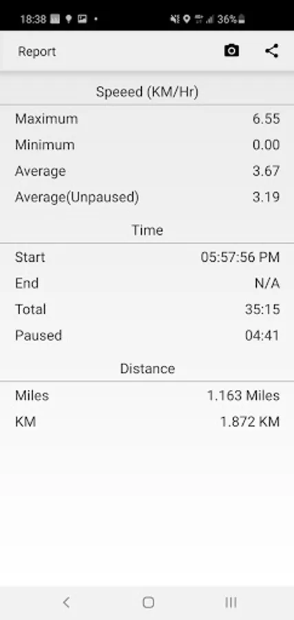 The app allows you to see the total distance covered, at what speed (average, minimum and maximum) and the time taken to travel the distance. It lets you pause the ongoing session so that you can capture the metrics accurately.