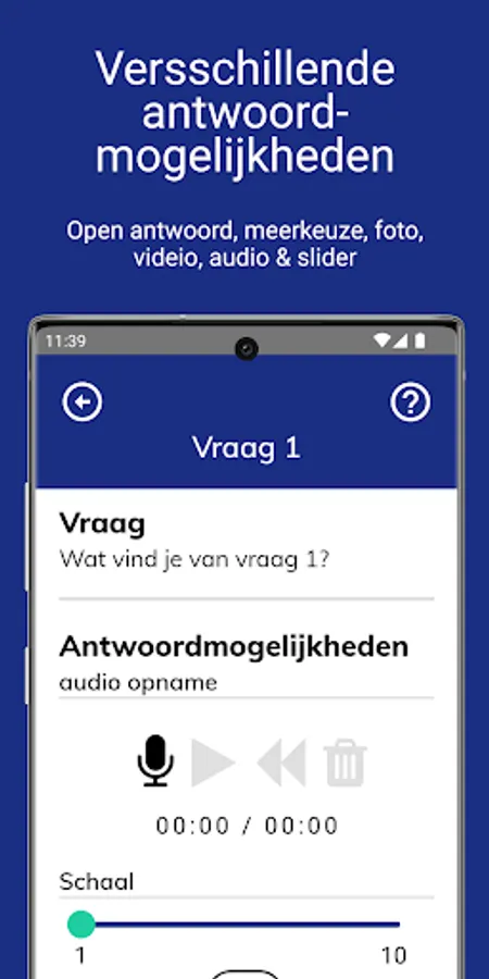 These questions consist of different answer options with which you can express your findings by means of an open answer or voice recording.