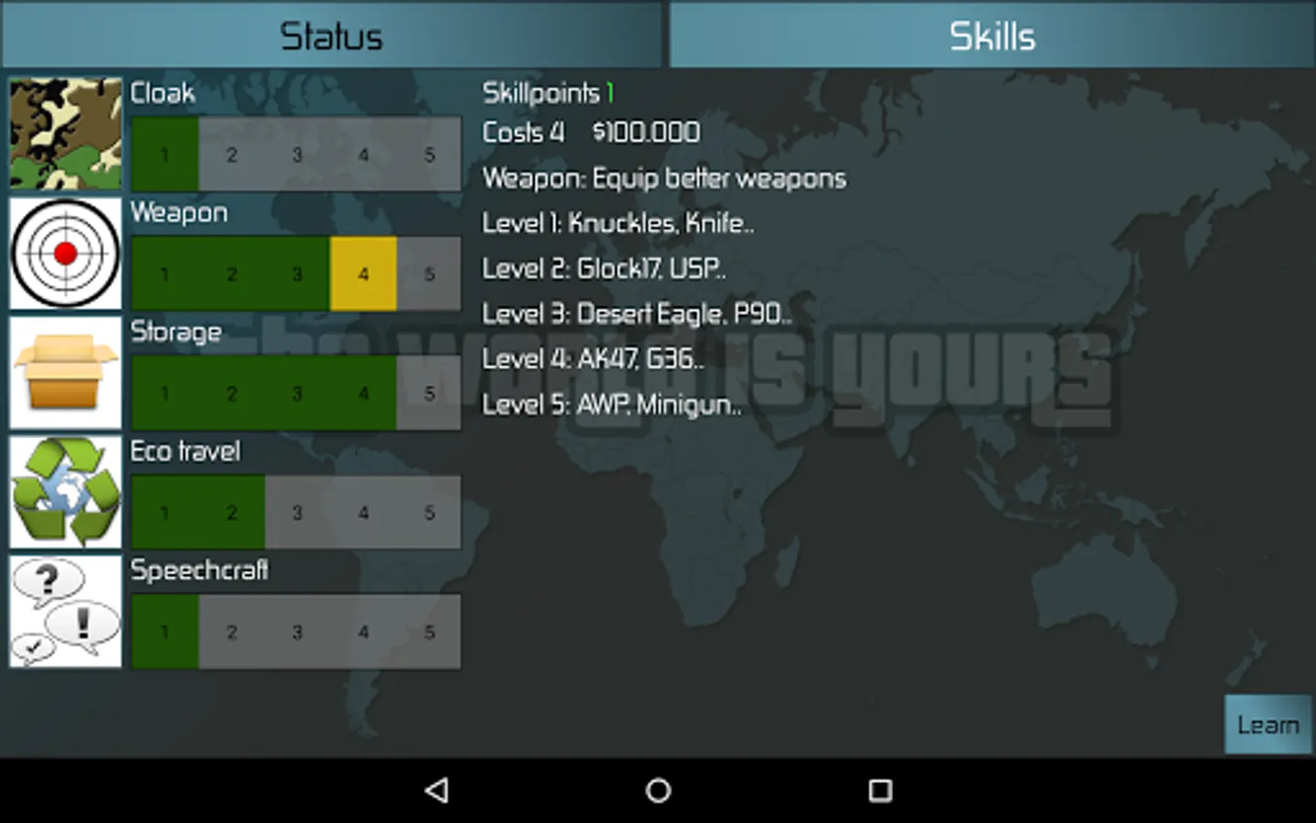 Increase your 5 Skills with skillpoints to be more successful in the world of dope.