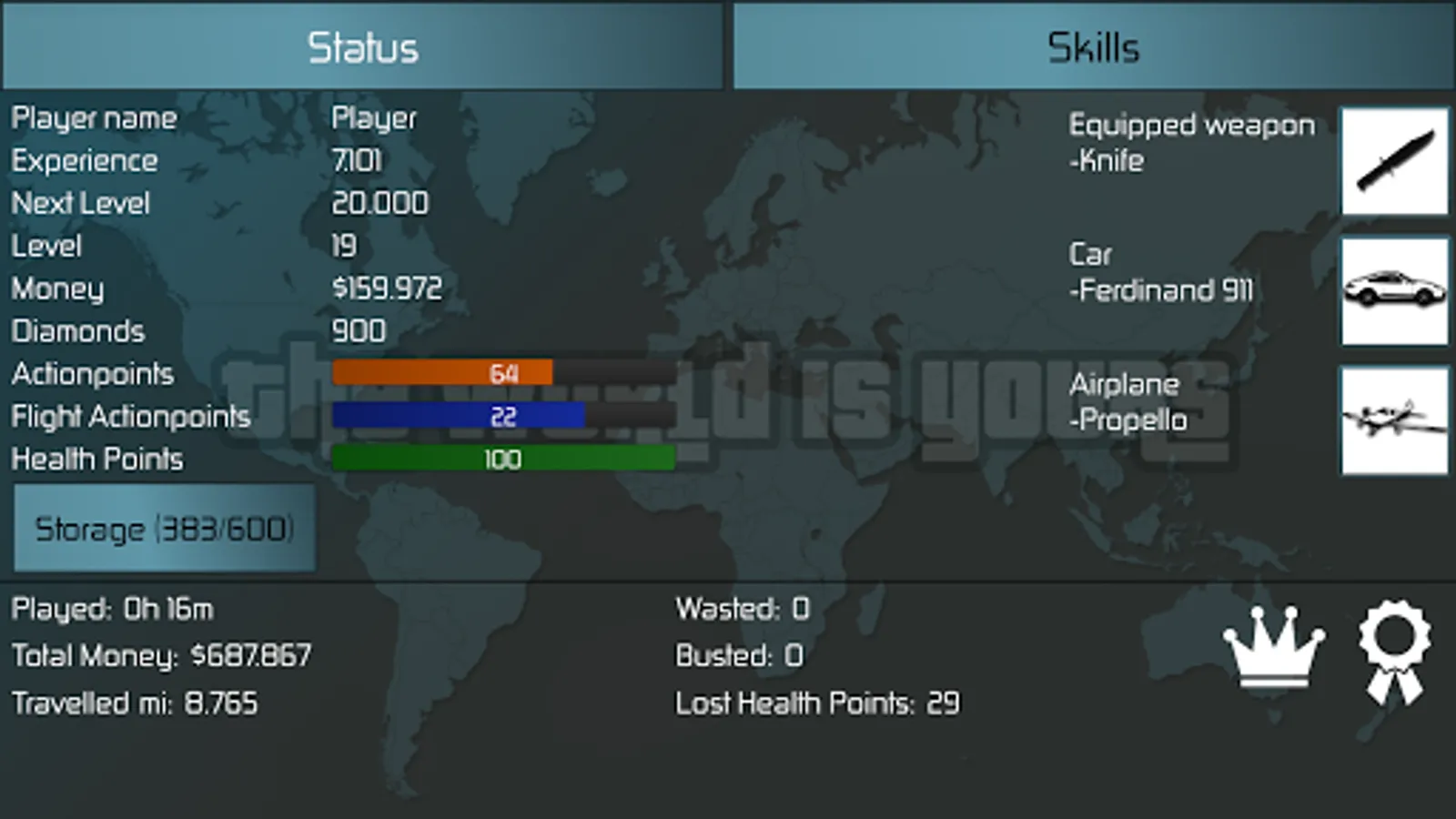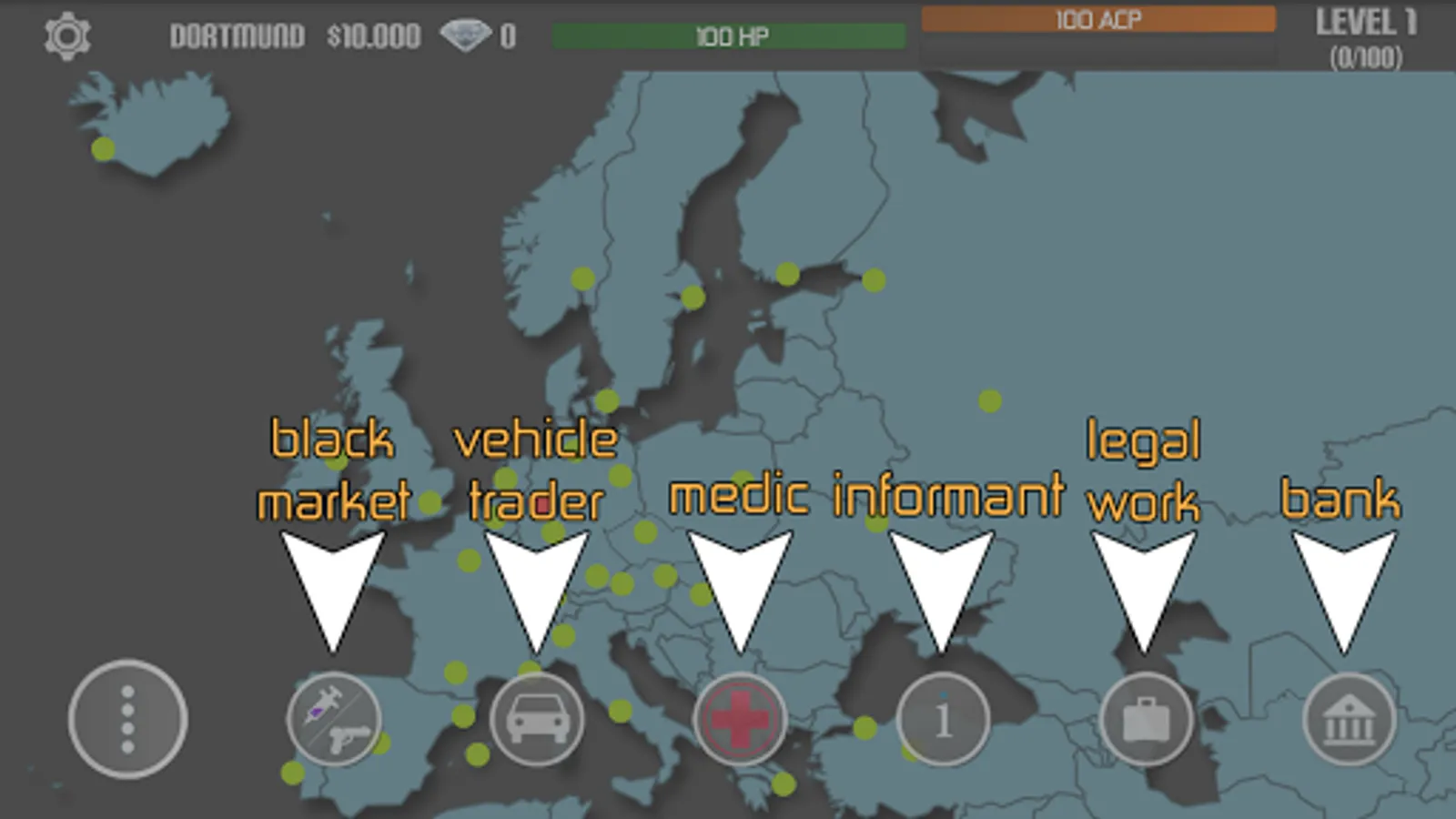 Gain experience by dealing and level up to get access to more drugs, weapons, cars and airplanes.