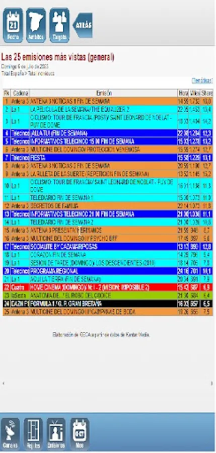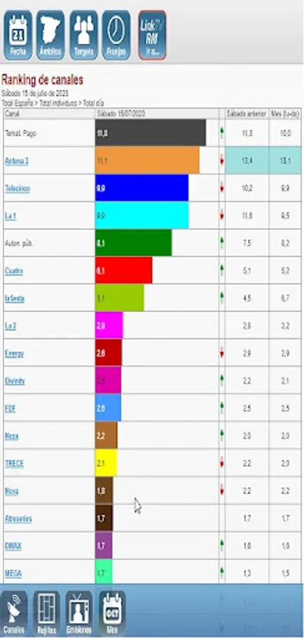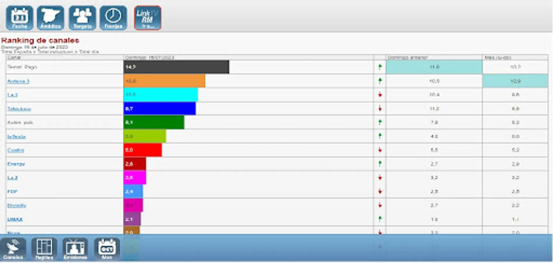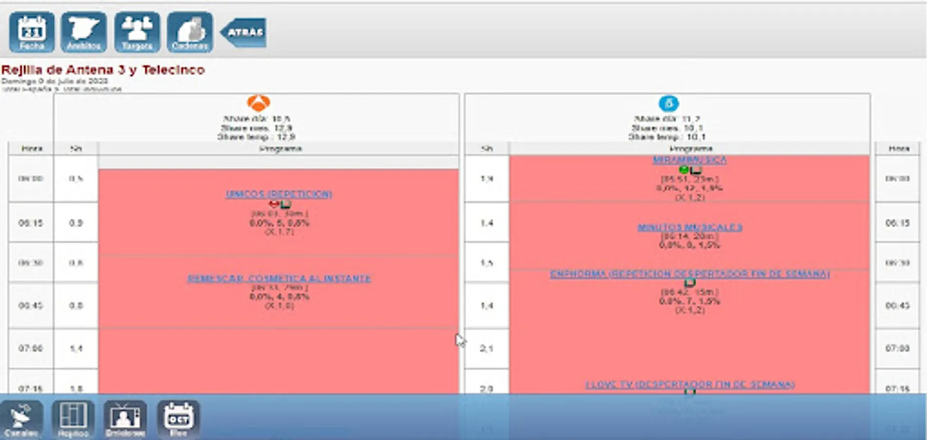 Daily, comparative and detailed analysis of TV channels in Spain.