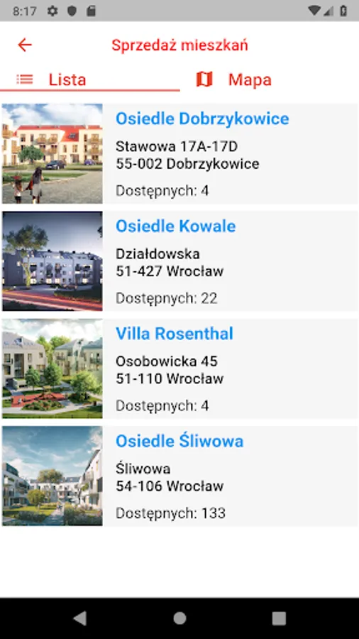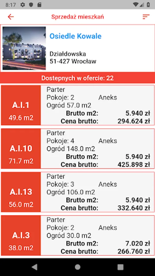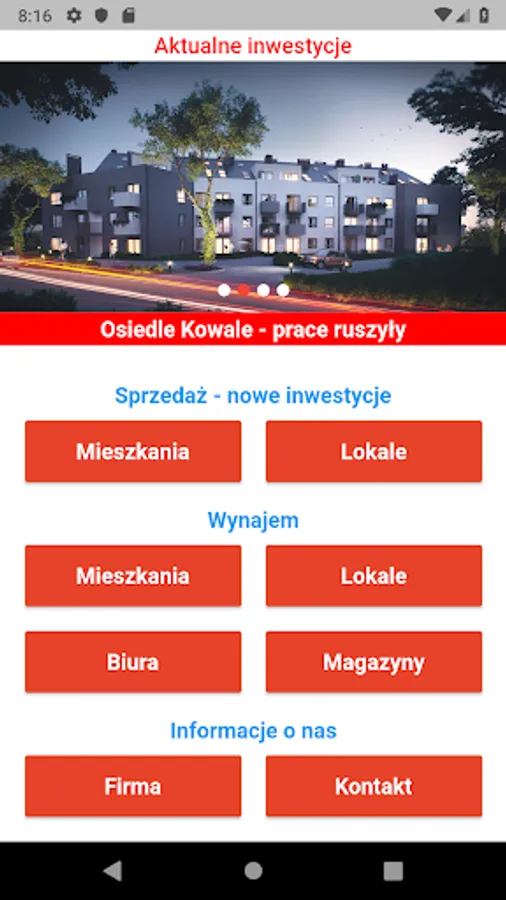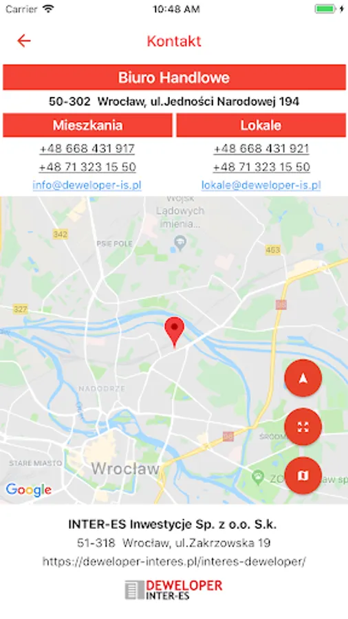 The application displays the available investments. The developer of INTER-ES and other entities.