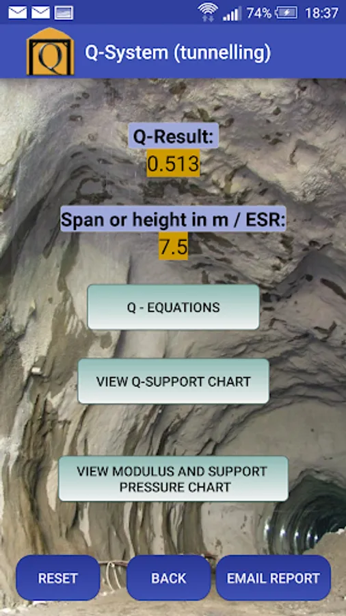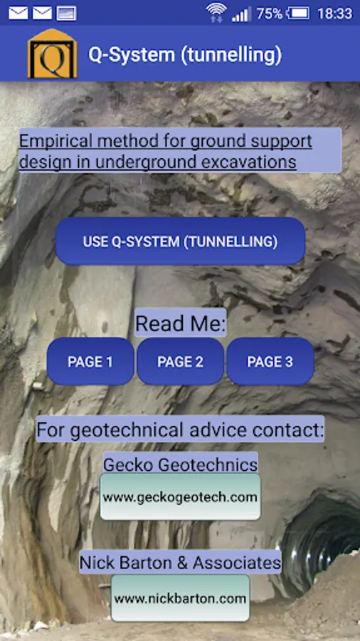 Gecko Geotechnics has developed a mobile phone application for empirically design ground support for tunnels and underground excavations using the Q-system. This application provides interactive input menus, background reading, and graphical outputs (Q-support chart & Modulus and Support Pressure chart). It also allows for emailing of automatically generated reports.