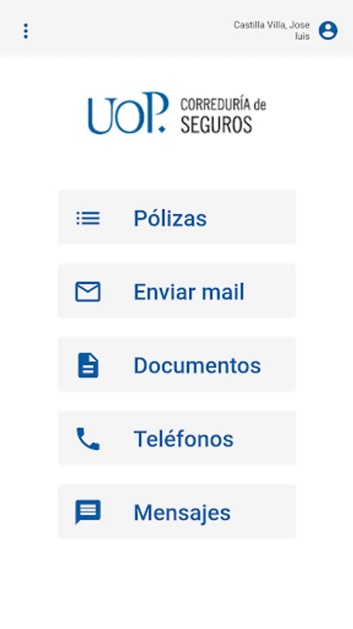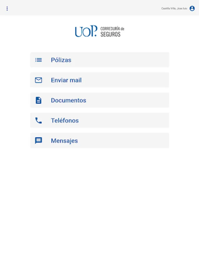 Application for the management, by the end users of the UOP brokerage, of their policies