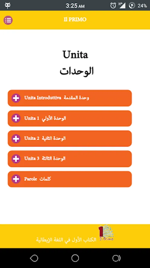 · كلمات الدروس منطوقة إيطالي - عربى Unita`