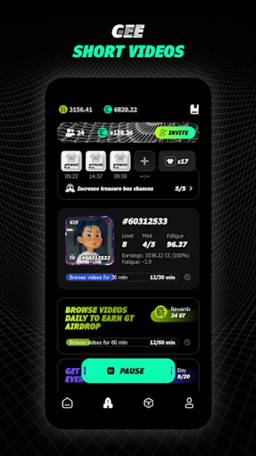 Watch short videos on Gee daily to earn GT and CC rewards for free.