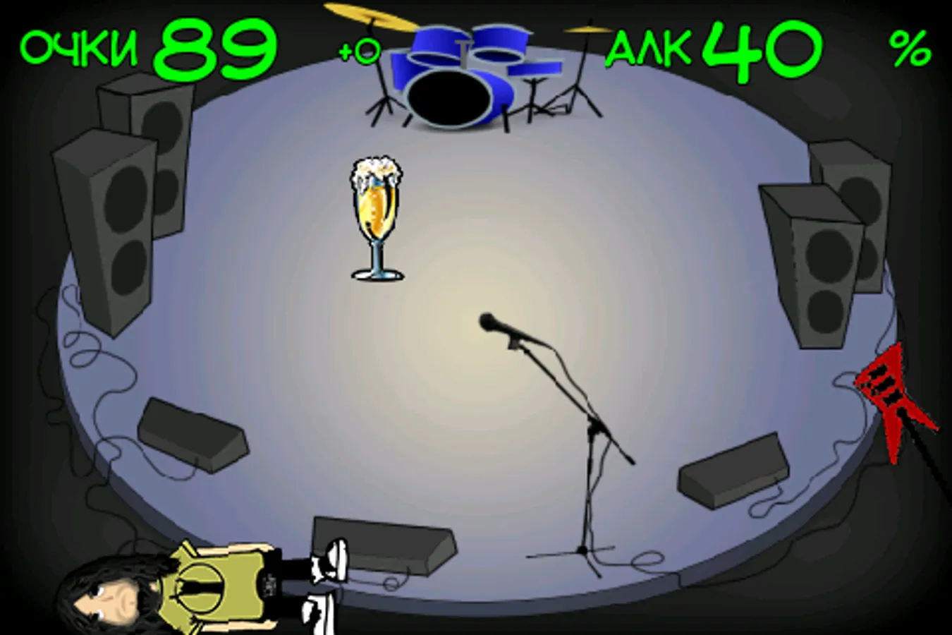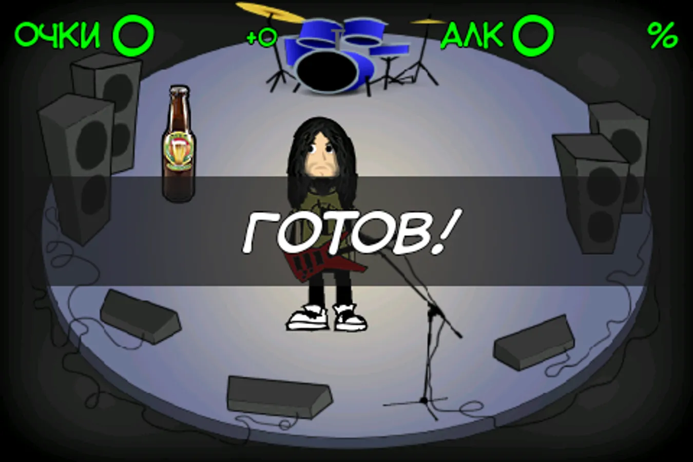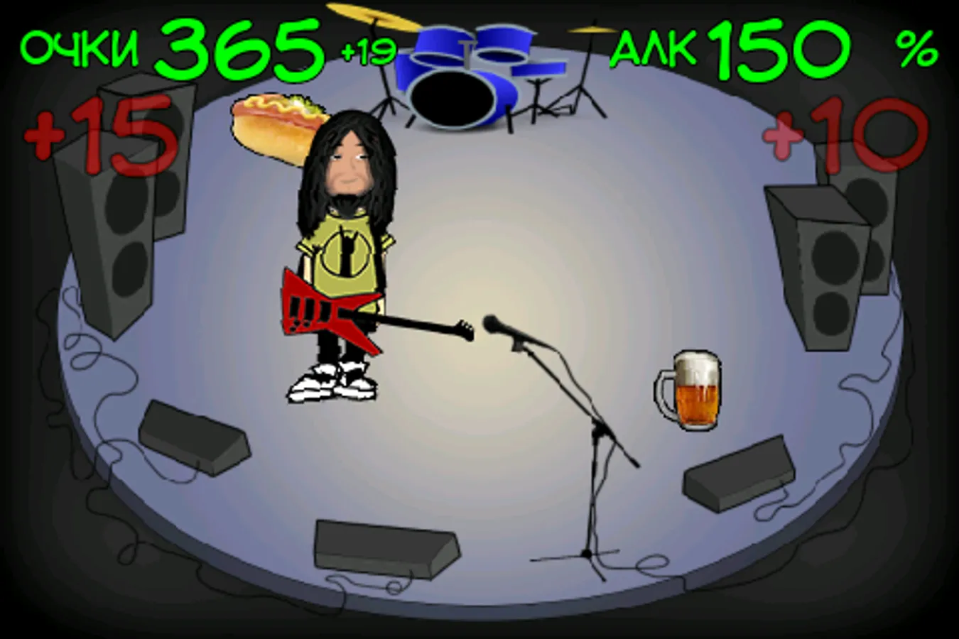 Do not let bassist spend a day wasted. Help him in a courageous struggle for the abolition of alcohol! Use the accelerometer sensor, or to bring it closer to his goal. And be sure to let us have a snack that he felt better on my feet!