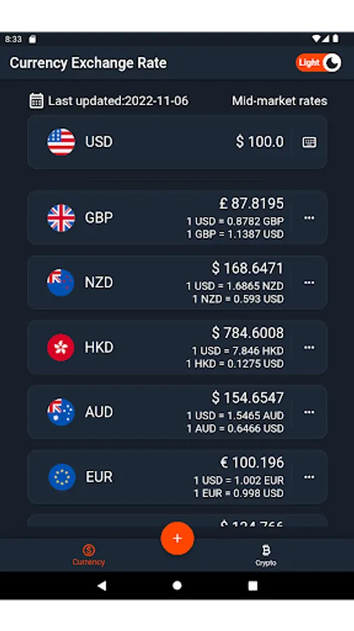 From Exrate app, you can easily get global currency exchange rates and latest prices of hundreds of cryptocurrencies . Light and dark themes meet your individual needs. Easily reorder the currency list for easy viewing. you can easily calculate the monetary amount you need to query, with a simple calculator function.