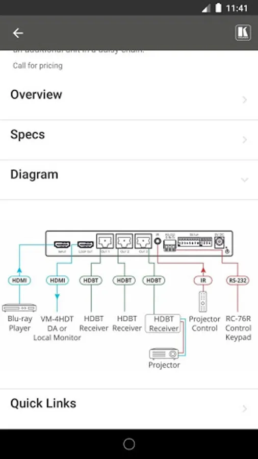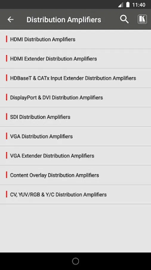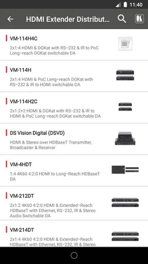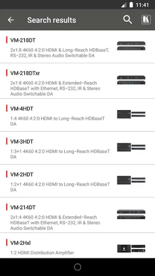 Kramer Catalog provides all the information about the extensive range of Kramer products at your fingertips. With Kramer Catalog, you can view the entire Kramer product directory, offline, on your device. Easily access all the product information you are familiar with from the online Kramer website – including features, specifications, and links to online product pages and available documentation – from anywhere in the world.