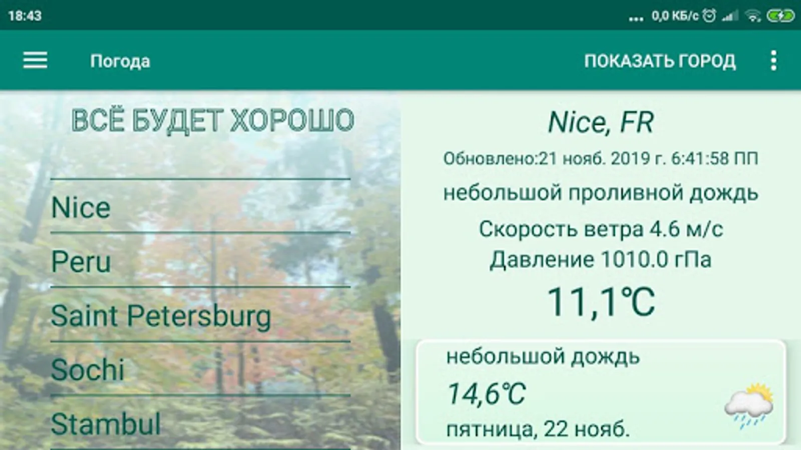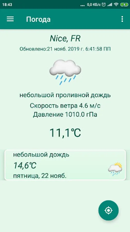 The application automatically determines your location and