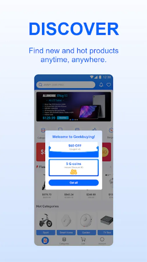 Online shopping with Geekbuying is very easy as you get to shop from the comfort of your home and get products delivered at your doorstep. By downloading the Geekbuying free online shopping app on your Android phone or tablet, you can effortlessly browse our massive collection of more than 20,000 products from multiple categories including mobile phones, fashion wear, electronic devices, accessories and consumer durables.