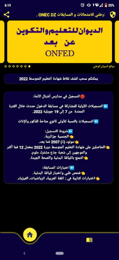 The application of the National Office for Examinations and Competitions, onec dz contains all the electronic services provided by the National Office for exams and school precedents, so through the application, teachers or free students can perform the following operations