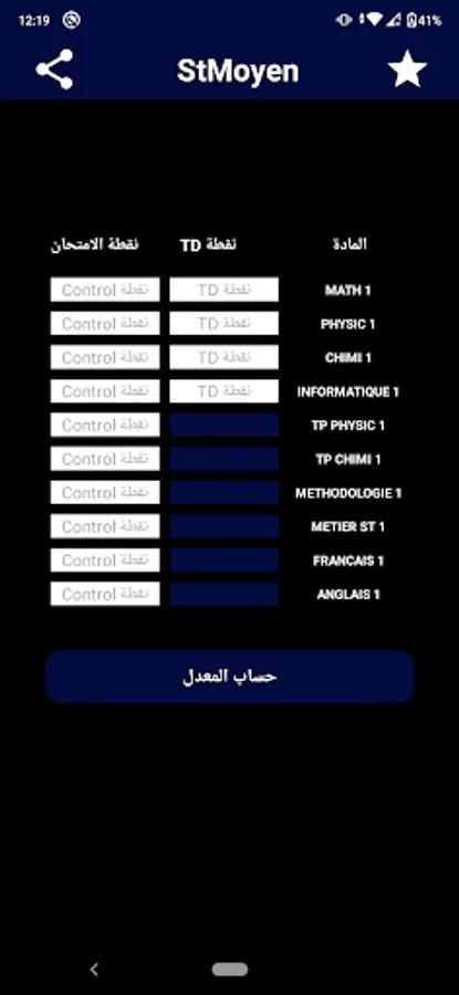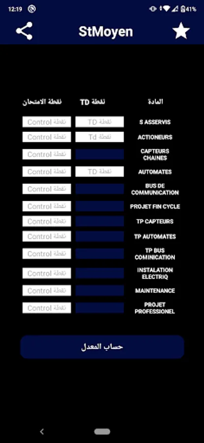 The application of calculating the semester average of the Faculty of Science and Technology for the three years according to the decision of the Algerian University
