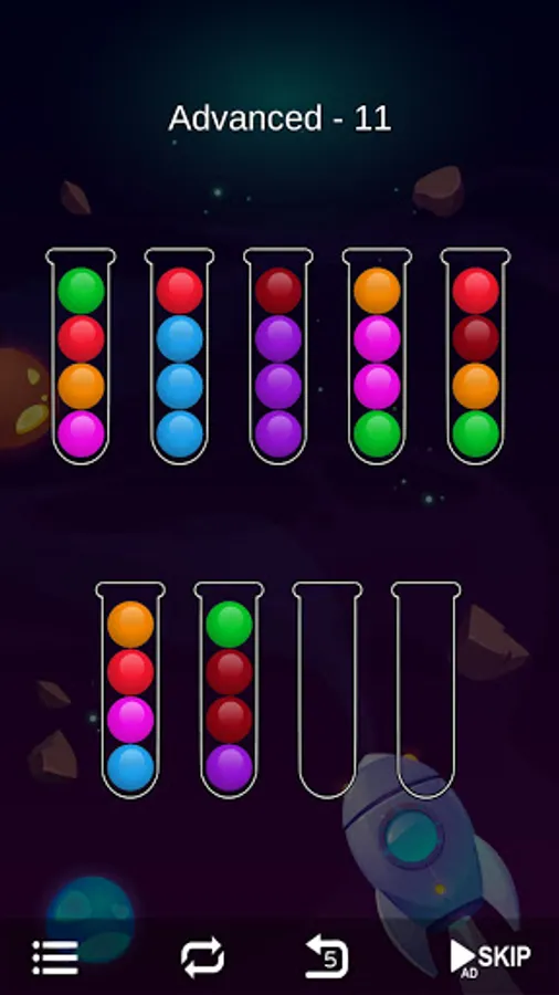 Sort the ball is a fun and addictive puzzle game! Try to sort the colored balls in the tubes until all balls with the same color stay in the same tube. A challenging yet relaxing game to exercise your brain!