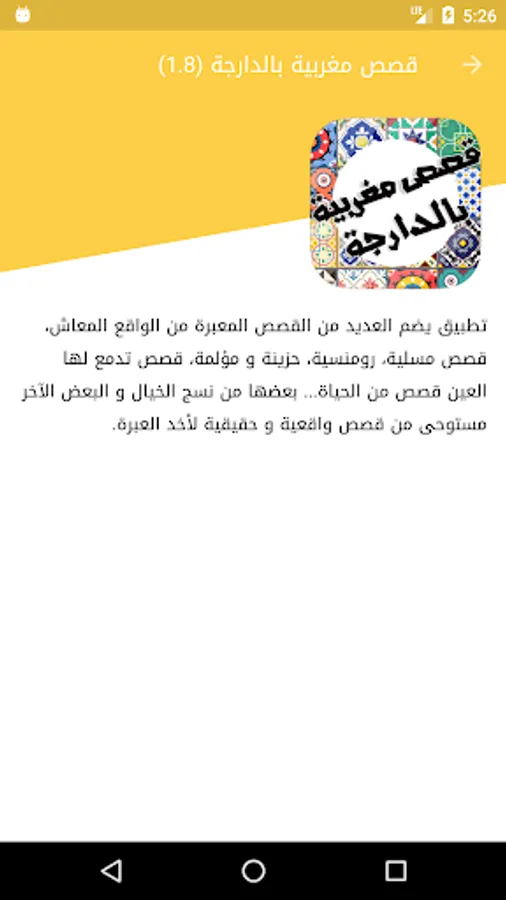 Stories in Moroccan dialect: a Moroccan application that includes many novels and expressive stories from the lived reality: stories of love and romance.. Stories are all interesting and unexpected events with an interwoven drama... Stories that tell about treachery and separation, stories about injustice, betrayal and revenge, Stories of the jinn and horror, stories with a comical and entertaining flavor, "Bash read and roll over your head.."
