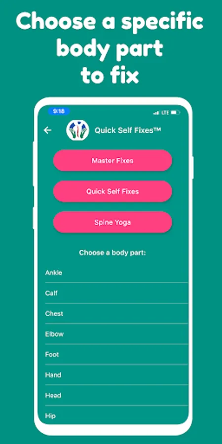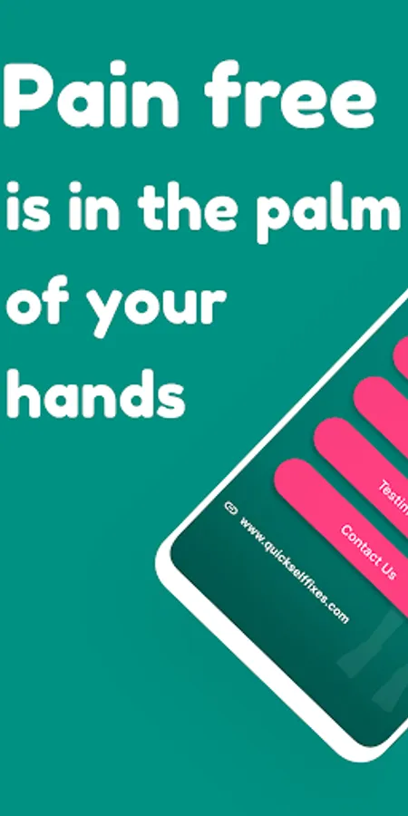 Quick Self Fixes do not diagnose or treat disease, injuries, or ailments. For safety reasons, prior to performing Quick Self Fixes, show this app to your Medical Doctor to be sure that the Quick Self Fixes are safe for you. Promptly stop doing any Quick Self Fix if there is pain.