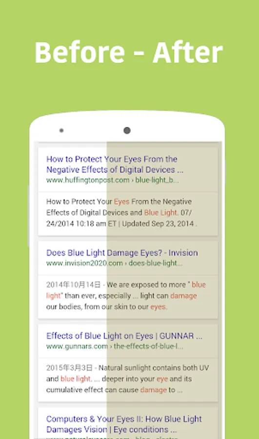 All of these problems are caused by the blue light that emitted from the phone screen. Which will bring you eye strain and vision loss if you looked at the screen for a long time without rest.