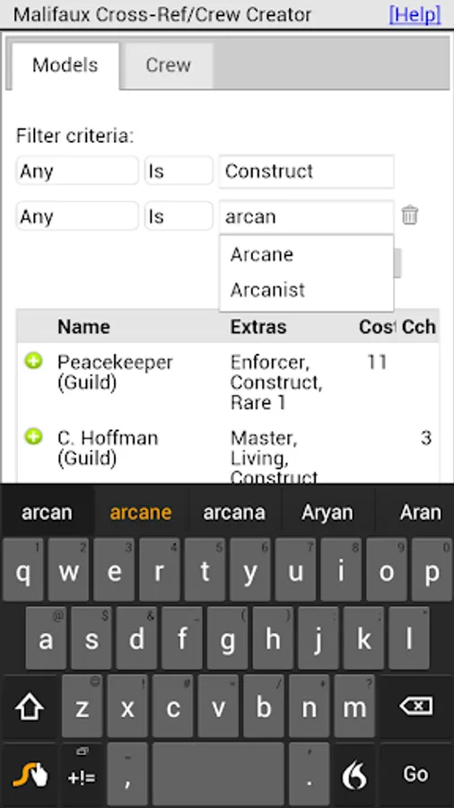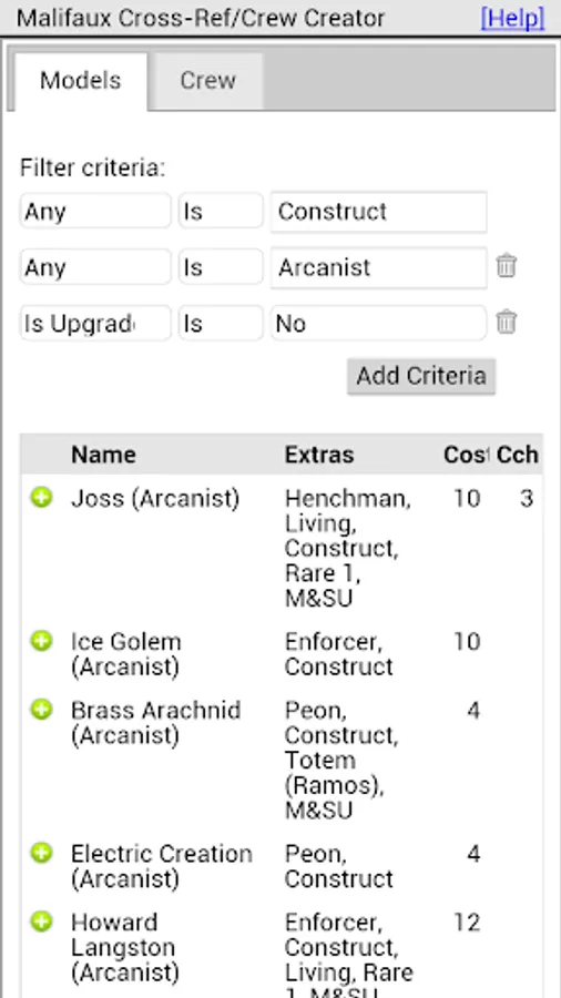 MalifauxModels is a simple app to let you play with different Malifaux model combinations and build crews on your phone.