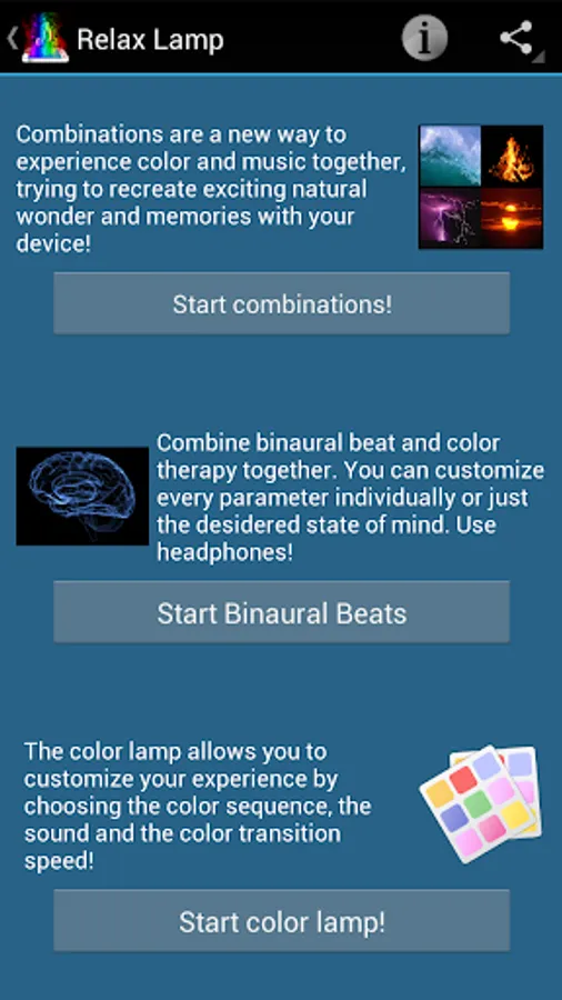 Combinations are a new way to experience color and music together, trying to recreate exciting natural wonder and memories with your device!