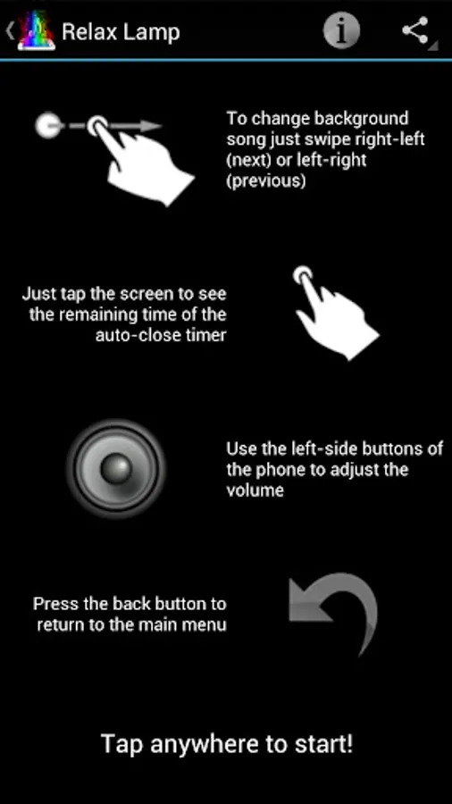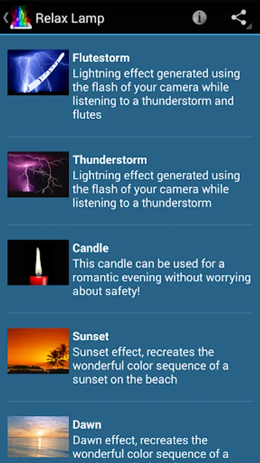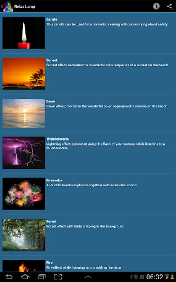 This app can be used as a sleeping aid, to stimulate your mood, as a meditation assistant, a stress reducer or simply as an ambient light.