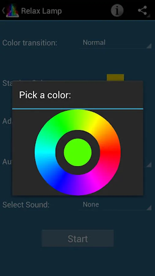 The color generation algorithm uses the phases between the RGB components, which we express as sinusoidal curves. This allows Relax Lamp to reproduce a fluid and unique color sequence depending on the starting color you choose.