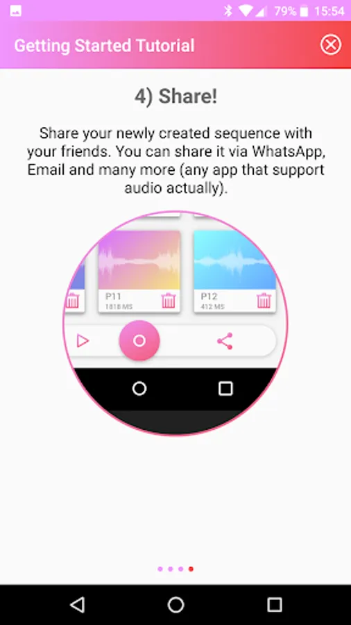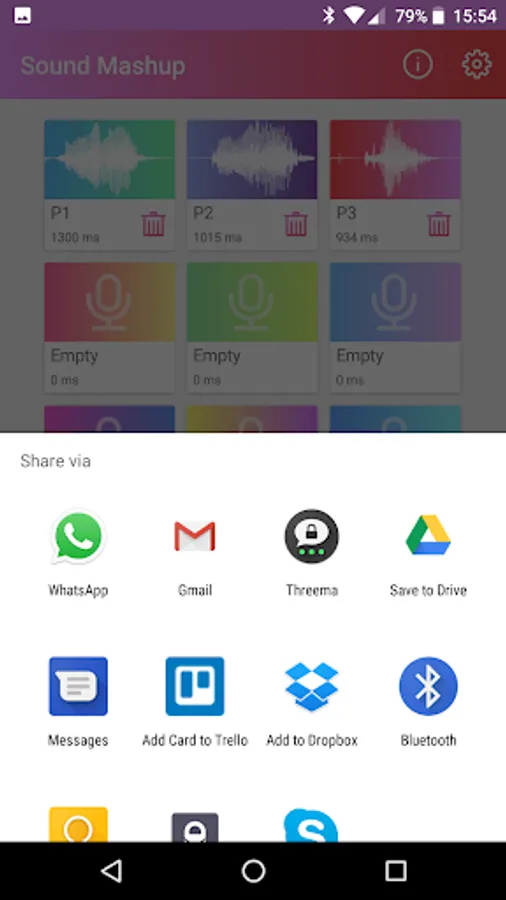 You can then share the audio creations to your friends via your favourite messaging app (WhatsApp, Threema, ...).