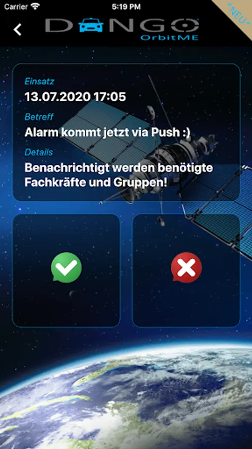 Rescue workers are alerted to operations by push department and can confirm or reject them. If the TrackME is activated, the control center can see when a force arrives at the guard and will be ready if the promise is given.