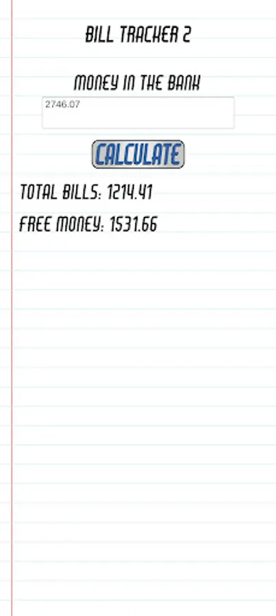 Introducing Bill Tracker 2 - the ultimate financial management tool for your Android device! With the power to track all your bills, you can easily keep track of all your expenses and income sources in one place, helping you to stay on top of your finances like never before. With an intuitive interface, you can input your bills, wages, or savings effortlessly, and the app will calculate your monthly expenses and free money in no time. Plus, you can remove bills, change your bank balance to see correct spare money, and it's designed to help you gain control over your monthly spending. Best of all, your data is only stored on the app and we have no access to it, so you can rest assured that your information is safe and secure. With Bill Tracker 2, financial freedom is just a few taps away!