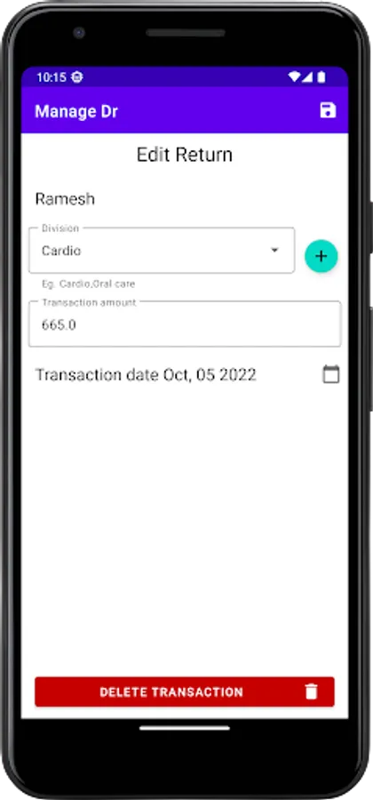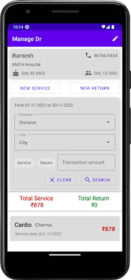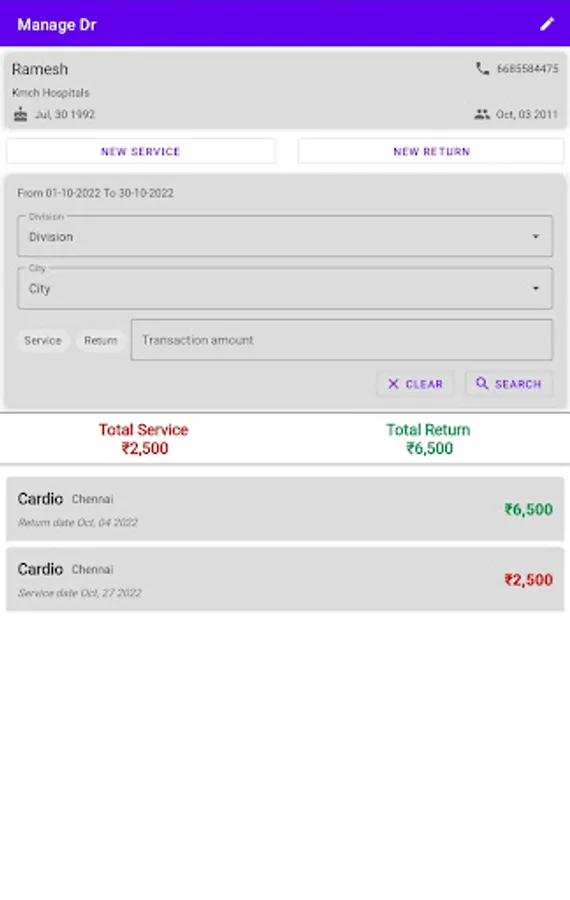 This app can be used by Medical Representatives to Manage transactions(Services & Returns) with doctors