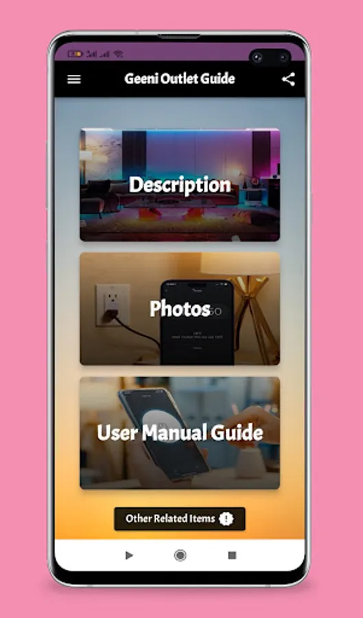 In geeni outlet guide app we supported many sections of content that will let you now more information about geeni outlet guide