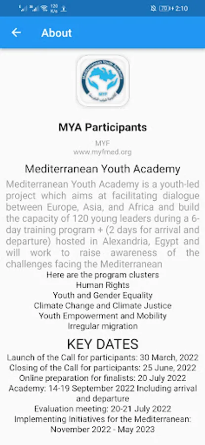 Mediterranean Youth Academy is a youth-led project which aims at facilitating dialogue between Europe, Asia, and Africa and build the capacity of 120 young leaders during a 6-day training program + (2 days for arrival and departure) hosted in Alexandria, Egypt and will work to raise awareness of the challenges facing the Mediterranean.