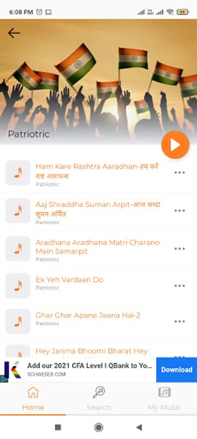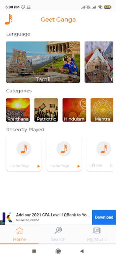 Geet Ganga is one stop resource for 100s of free patriotic and inspirational MP3 songs in over 14 Indian languages. Enjoy MP3 geet in Bengali English Hindi Kannada Malayalam Marathi Marwari Oriya Sanskrit Tamil Telugu and many more you can download song and play it offline, Create your Favorite songs playlist and play it any time.