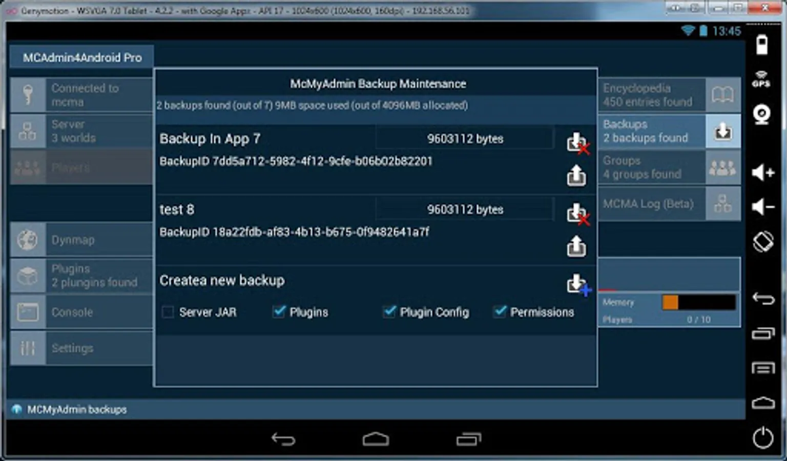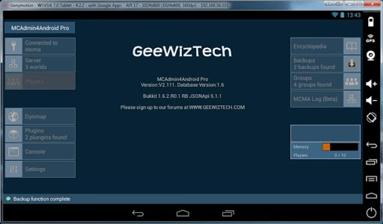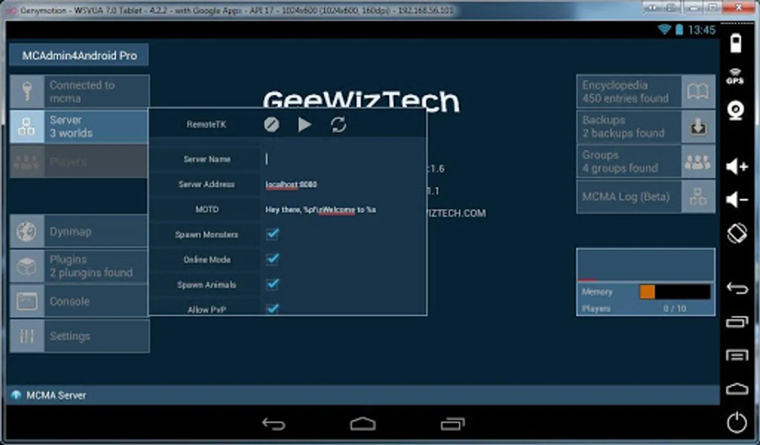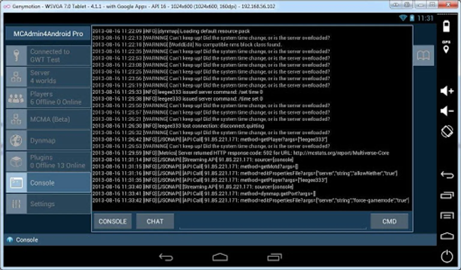 The application allows admins of JSONapi enabled servers or servers using the McMyAdmin wrapper to control and interact with their Minecraft servers on any android V3 and above devices.