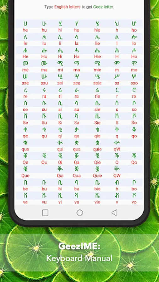 + The GeezIME app does NOT save keystrokes or text input made through the application.