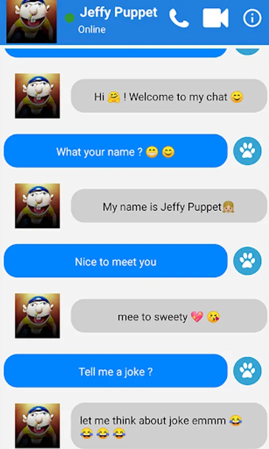 Chat with toy jeffy puppet prank-fake call App to simulate chat conversations. Have fun with your friends, a video of jeffy will be played when you answer the video call .