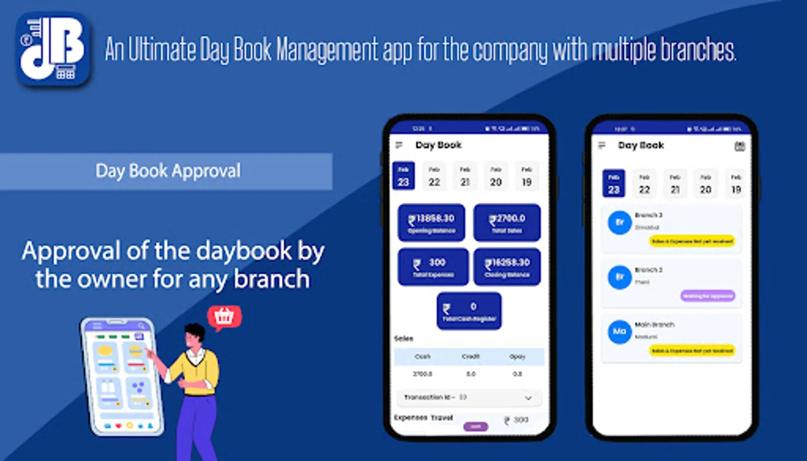 * Approvals: Get the day book approved by the owner for any branch.