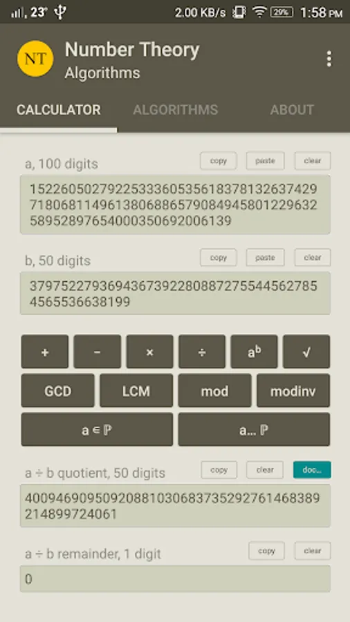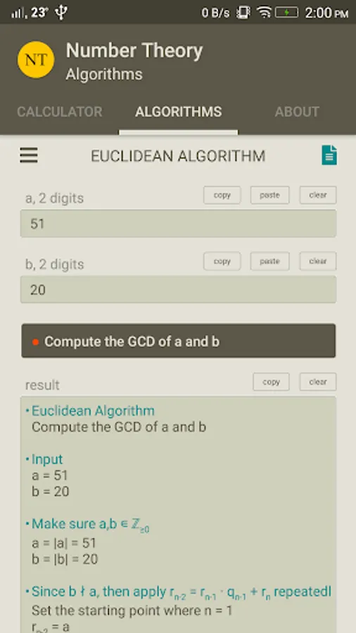 Euclidean Algorithm. Compute the Greatest Common Divisor (GCD) of two numbers a and b.