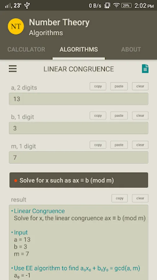 Linear Congruence In Two Variables. Solve for x,y a congruence of the form ax+by ≡ c (mod m).
