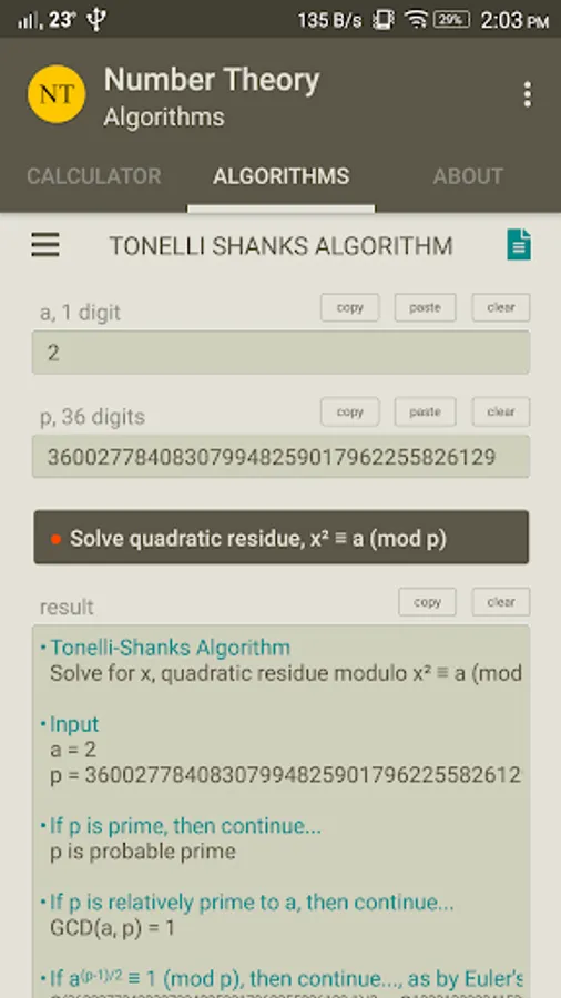 Tonelli-Shanks Algorithm. Calculate the Quadratic Residue Modulo. Solve for x, a congruence of the form x² ≡ a (mod p) where p is prime.