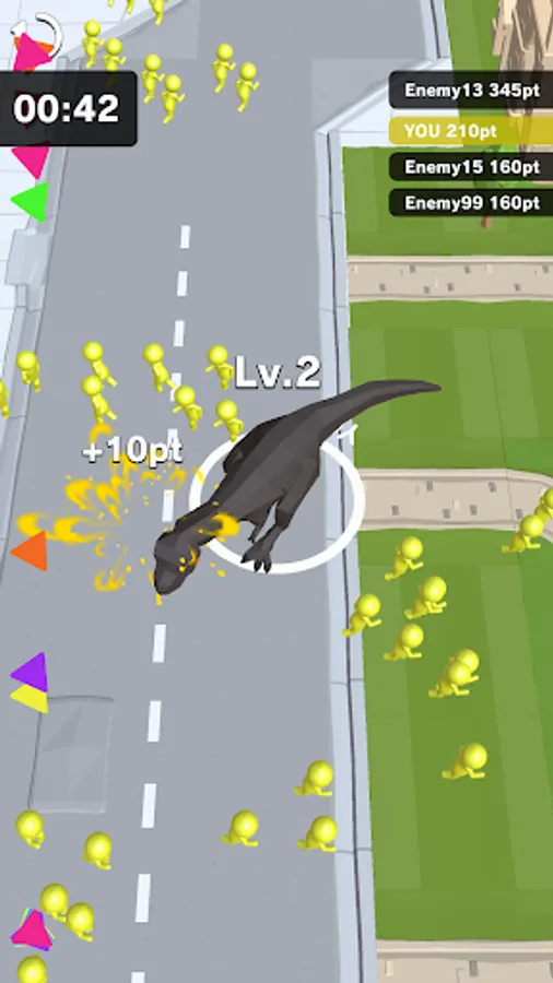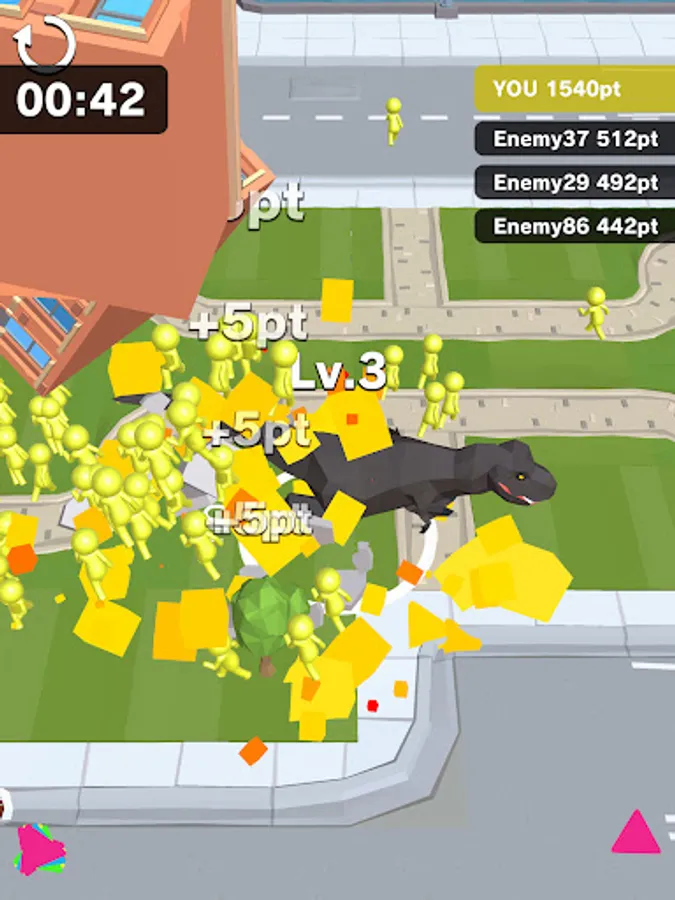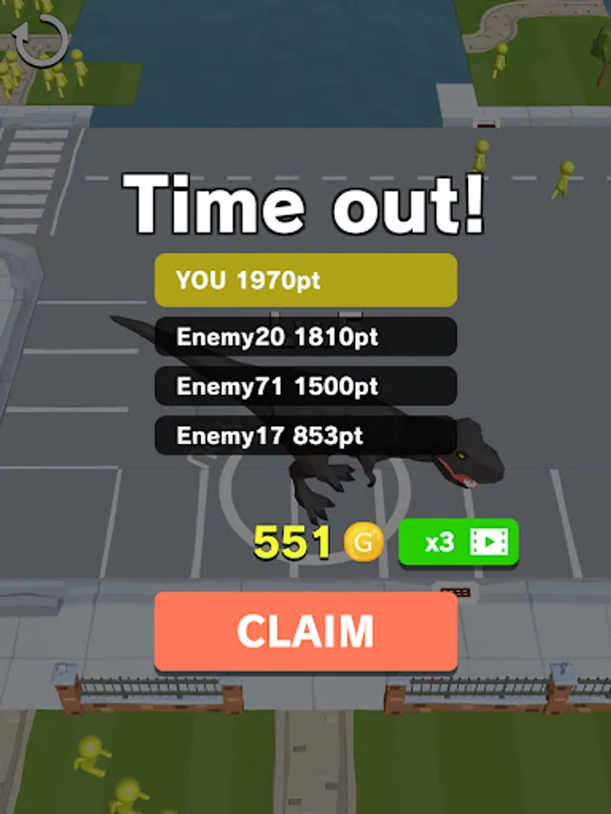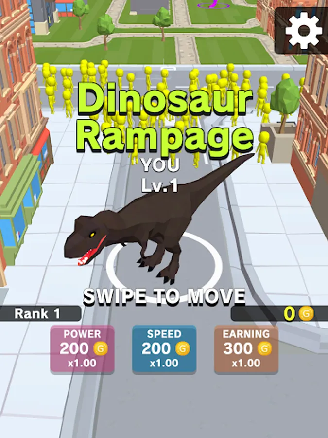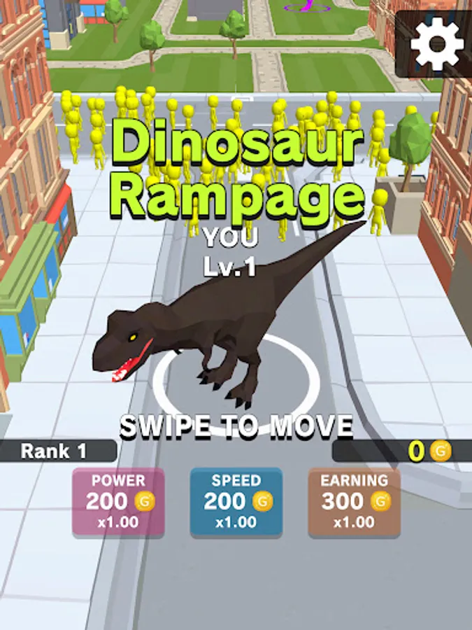 Move your dinosaur with simple controls. Win by eating the most people and causing the most destruction! Collect coins and make your dinosaur stronger!