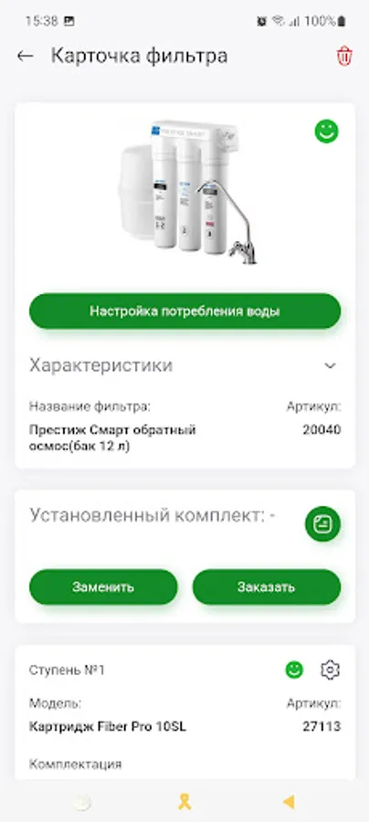 * Specify the start date of operation, after which the application itself will remind you of the need to replace