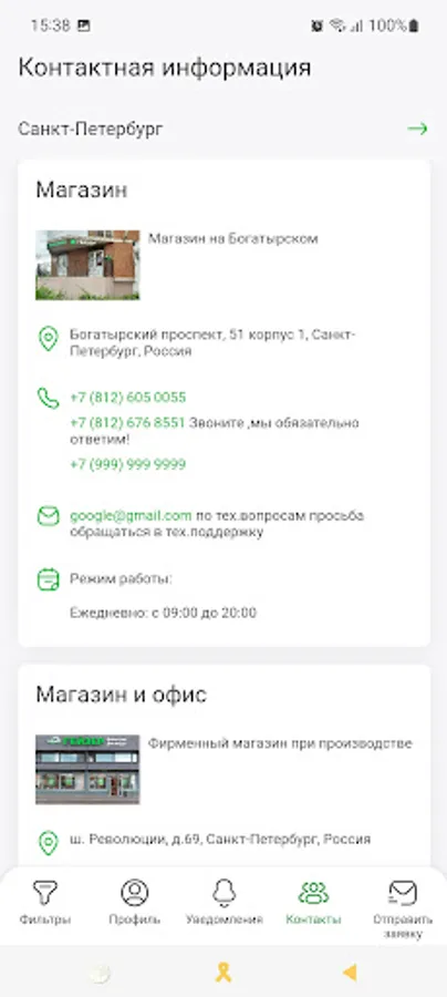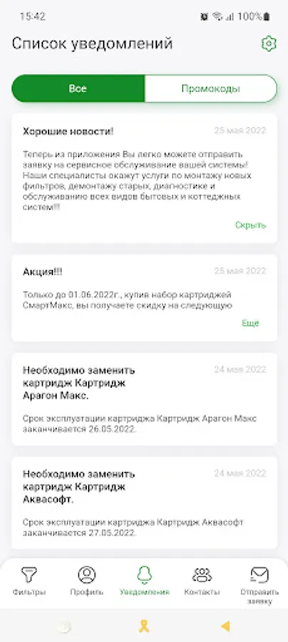- Through the application it is possible to leave a request for technical support and service, find the nearest