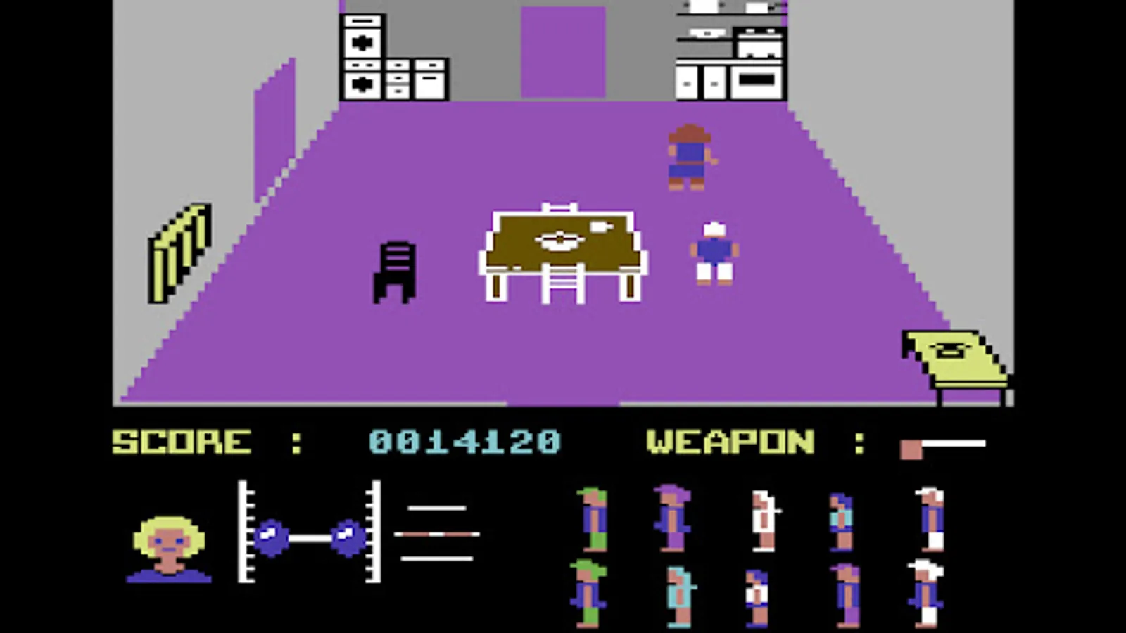 The game also features a "fear meter", in the form of a blonde woman's head with hair standing on end, to symbolize the player character's level of fright at the time.
