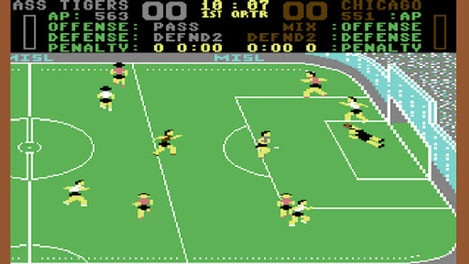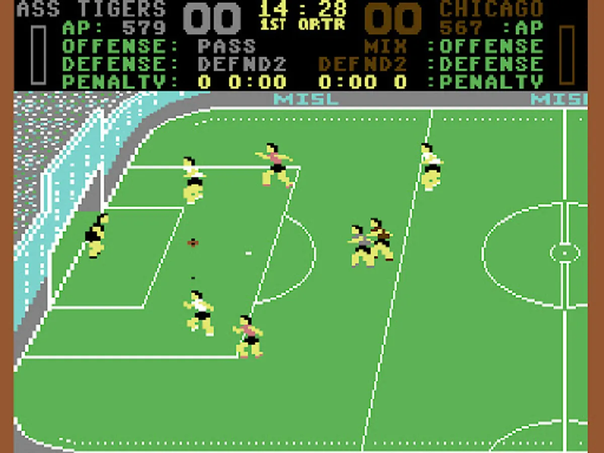 Indoor Soccer League is an arcade action soccer simulation game. The player controls one player at a time. In addition to taking the role of the centre forward, the player is also the manager of the team, responsible for hiring players and setting training regimes.