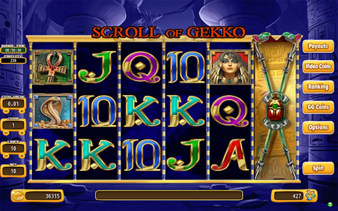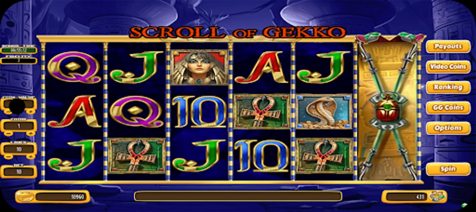 Choose your bet from 1 to 10 Paylines and GG Coins and spin the reels.