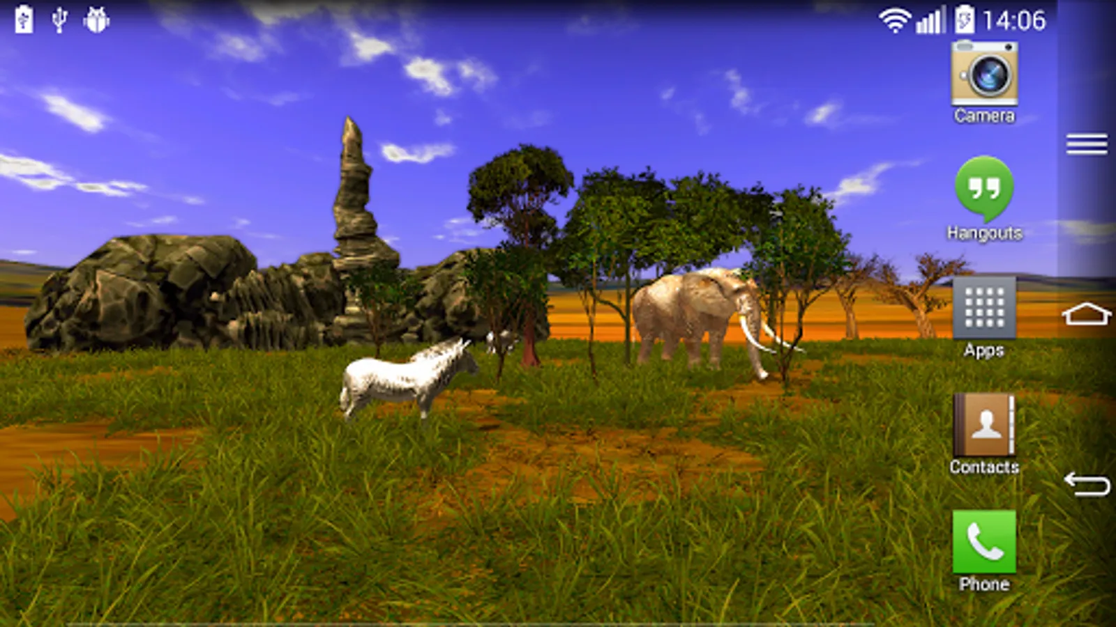 Is a live wallpaper taking place as you can guess in the Savannah, it features Zebras and Elephants in their natural habitat.