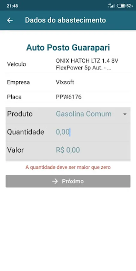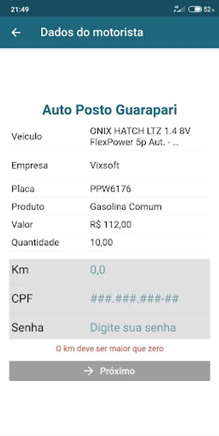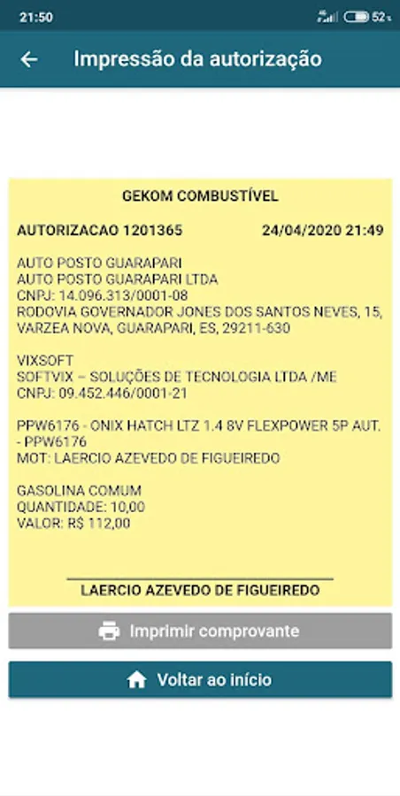 Application to support the gas station attendant to obtain the authorization for filling the vehicle of a partner company.