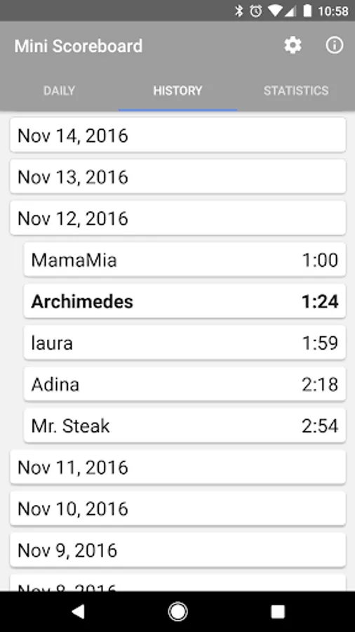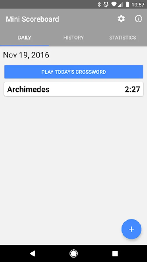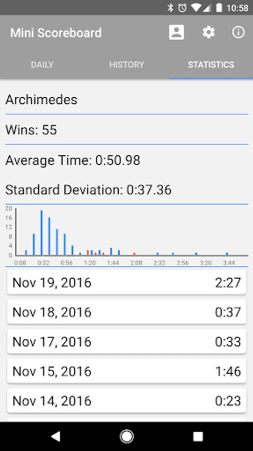 The New York Time's Mini Crossword is fun, but doesn't track anyone's puzzle times. Mini Scoreboard does! Now you can see statistics about your and your friend's puzzle times.