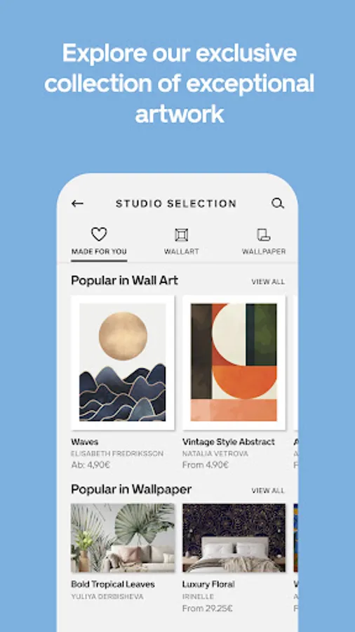 • Studio Selection – Find art that perfectly matches your taste. The Studio Selection designs were handpicked in collaboration with the world’s foremost visual experts from around the world - made by independent artists and photographers.